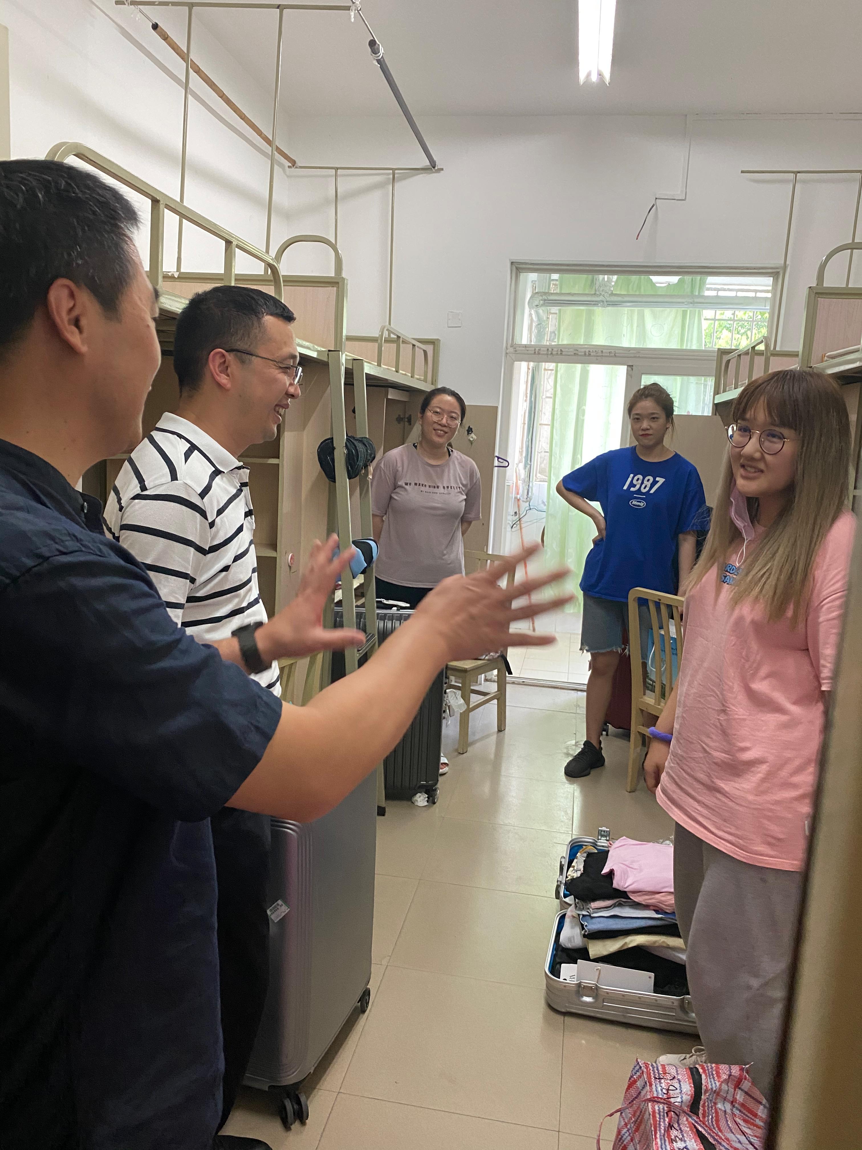 搬迁当日,辅导员杨都强老师到成都高铁站迎接每一位同学,辅导员罗晓蕾老师协同全院辅导员在宿舍区迎接同学们到来。