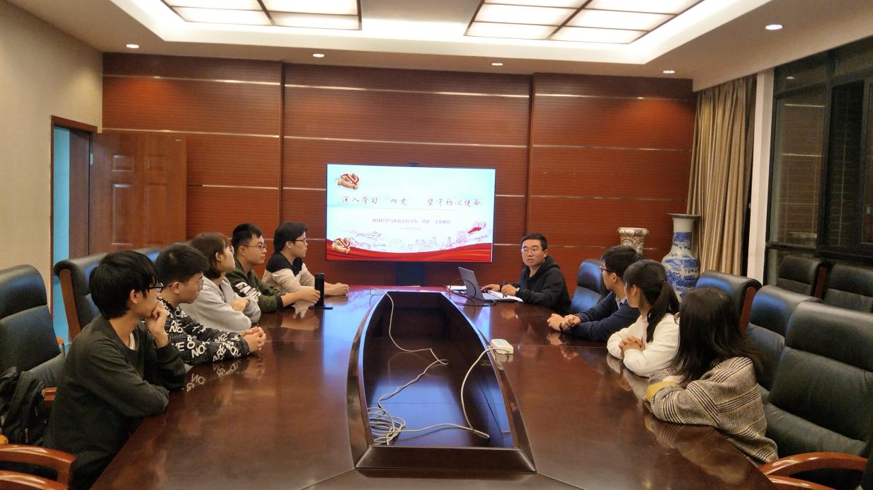 10月10日下午环境工程、消防工程专业的同学分别在x4133学四史,翟琦围绕“不忘初心,牢记使命”主题教育,讲述了“四史”是什么、为什么学“四史”。第一,什么是“四史”。“四史”就是党史、新中国史、改革开放史、社会主义发展史的结合,“四史”内容虽各有侧重,但整体讲的就是中国共产党为人民谋幸福、为民族谋复兴、为世界谋大同的实践史。第二,为什么学“四史”。知史以明鉴,查古以至今。习近平总书记指出,“只有坚持思想建党、理论强党,不忘初心才能更加自觉,担当使命才能更加坚定”。 所以学习“四史”是当代大学生必修的爱国主义教育课,让他们时刻不忘初心与使命。