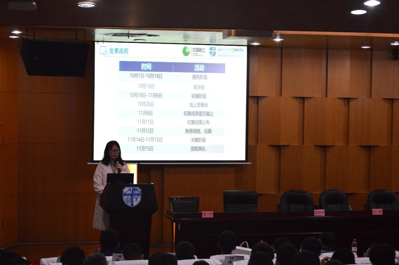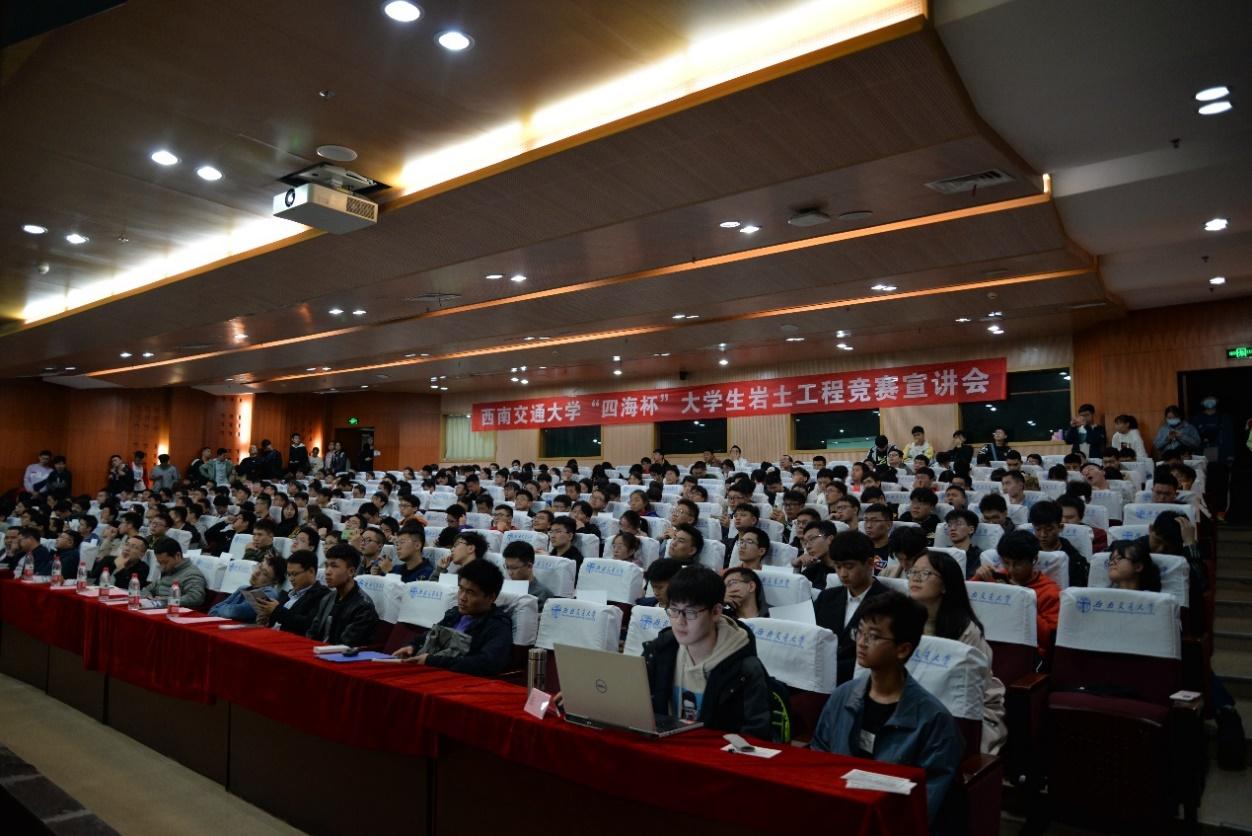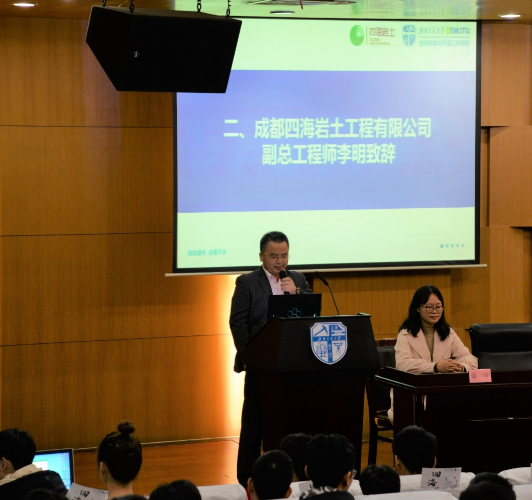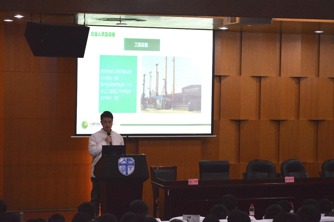 联合成都四海岩土工程有限公司于图书馆二号报告厅举办大学生岩土工程竞赛宣讲会。四海岩土工程有限公司副总工程师李明、人力资源总监徐艺、工程师陈挺、拉斯维加斯娱乐城