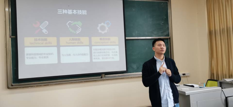 随后,杨都强老师以“优秀大学生应具备的三种技能”为题开展大学生涯教育,通过对“认知”“技术技能、人际技能和概念技能”的讲述,引导和鼓励同学如何更好的度过大学生涯,找到能力提升与个人成长的方向,确立自己的发展方向与就业领域。