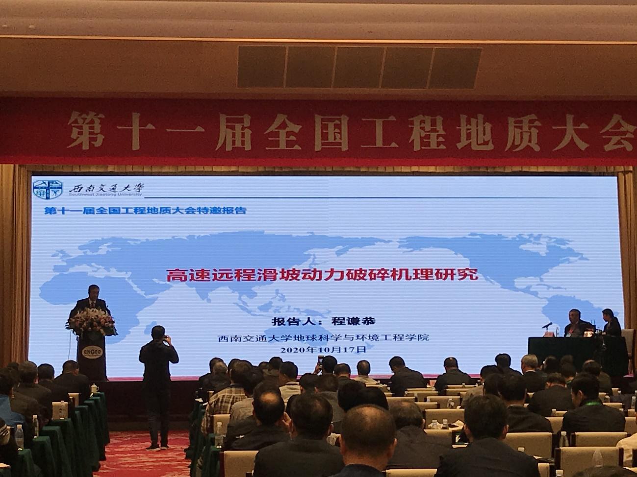 做了西南交通大学申报承办2022年全国工程地质专业委员会高层论坛的汇报,专委会已同意由我校承办。程谦恭教授进行了题为“高速远程滑坡动力破碎机理研究”的大会特邀报告。
