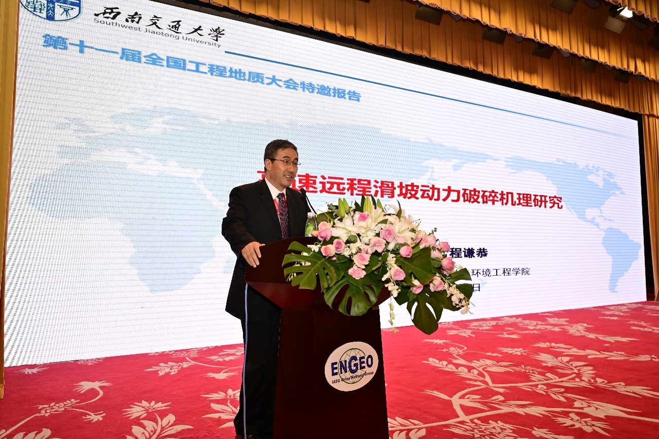 中国地质学会工程地质专业委员会委员、我院程谦恭教授做了题为“高速远程滑坡动力破碎机理研究”的大会特邀报告,详细汇报了其团队近年来对青藏高原典型高速远程滑坡的调查分析工作,以及高速远程滑坡动力破碎物理模型实验研究成果。该项工作系统分析了高速远程滑坡源区岩体结构、滑体碎屑化过程与滑坡运动距离三者之间的关系,揭示了高速远程滑坡动力破碎机理,受到了参会学者的高度赞赏。本项研究成果被国家第二次青藏高原地质环境与地质灾害综合科考(任务九)办公室列为2020年度七大进展成果之一,并在大会上进行了报导。大会闭幕式上,第十一届全国工程地质专业委员会秘书长祁生文研究员代表工程地质专委会将高速远程滑坡动力破碎机理列为我国工程地质学科前沿焦点上的重大进展。