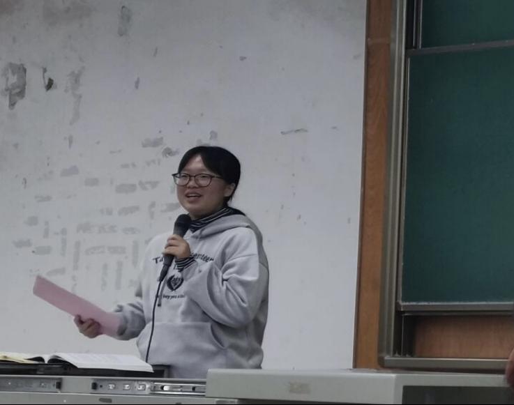 董可介绍了本科生管理规章制度汇编,从学习、寝室、奖学金三方面简要讲解新生应注意的要点,她的讲解也让同学们对学校的日常行为规范有了更深入的了解,让同学们更好的规范自己的行为。