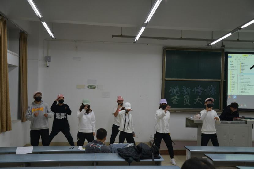 主持人生动形象地向同学们介绍了地新传媒,展示了独一无二的传媒精神。随后,各部门为现场观众带来了精心准备且极具部门特色的表演,引得同学们笑声不断,掌声阵阵。