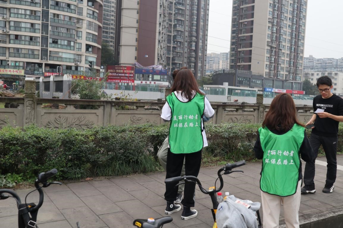 在工作人员的指引下,参赛者身着印有“美丽行动者·环保在路上”字样的绿色马甲,按照“体育馆堂吉诃德站→北区校车站→西门→南区体育场→机车博物馆→国旗台→四号教学楼”的路线依次跑过各个打卡点。