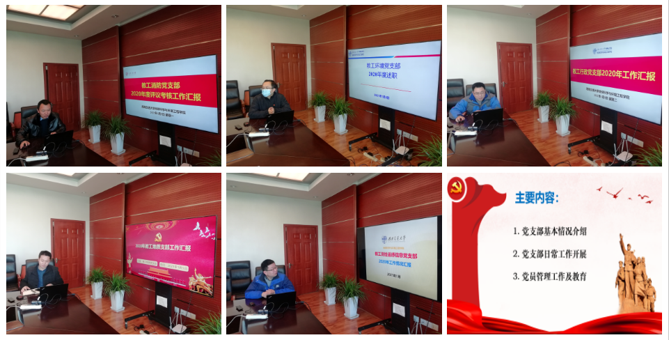 于2020年12月31日、2021年1月5日分别召开了2020年度学生党支部书记和教工党支部书记述职评议考核会议。本年度述职评议考核学生党支部采用线上线下相结合的方式,教工党支部采用现场述职评议的方式进行。拉斯维加斯娱乐城