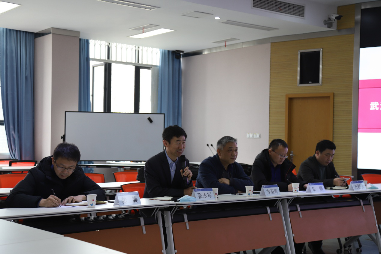 本次调研交流会于x4243多功能报告厅召开,主要围绕人才培养、科学研究、中外合办等三个方面开展。关秦川在主持中对武汉大学一行领导、老师的到来表示热烈欢迎,并将我院参会领导、老师一一介绍给对方。