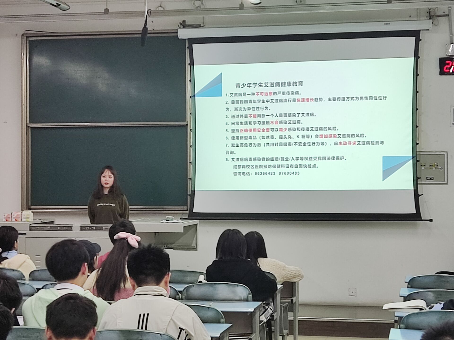 学生工作组高度重视预防艾滋病与结核病宣传教育工作,积极开展班会介绍艾滋病与结核病等重大传染病的传播途径与防治知识等相关内容,增强同学们预防传染病的意识和能力,树立正确的生命观、道德观和社会责任意识。