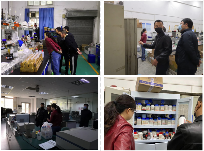 本次检查的内容包括实验室的设备运行情况、危险化学品的使用及管理、消防安全、用电安全、通风情况以及环境卫生等。重点任务是排查实验室危化品的使用及管理,对存在的、潜在的安全隐患进行了详细登记,并现场提出了整改意见和建议。