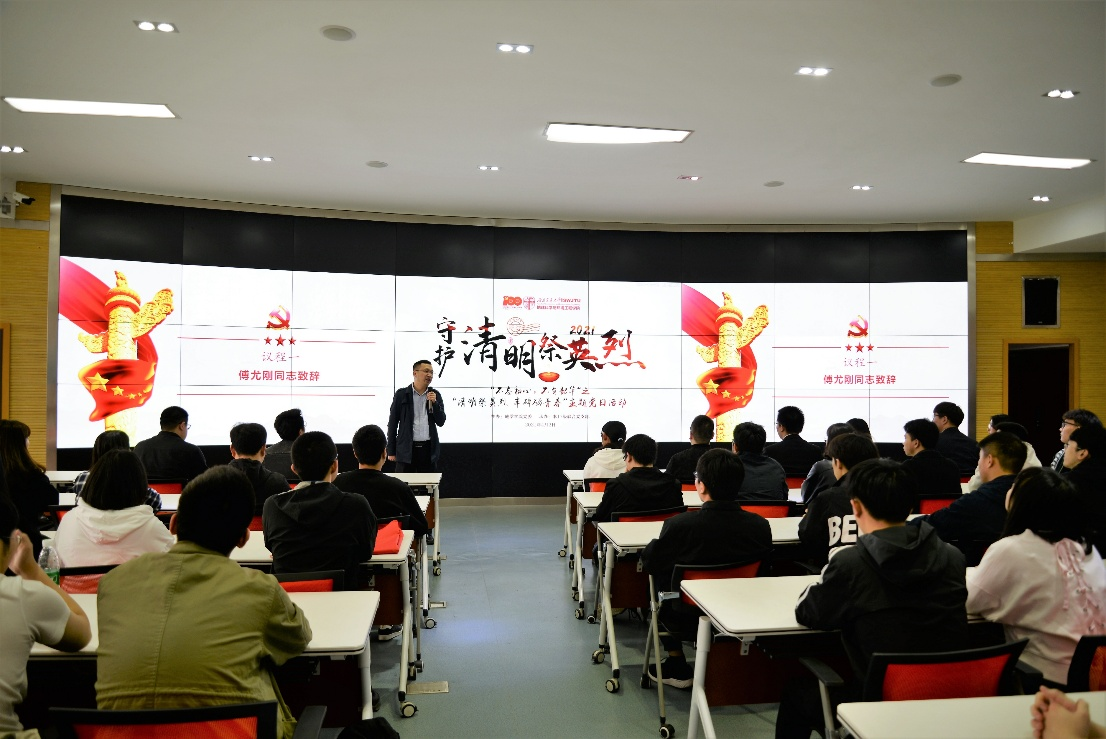 傅尤刚讲到,今年是中国共产党成立100周年、“十四五”规划及现代化建设新征程的开局之年,通过清明祭英烈的方式,同学们铭记英雄,缅怀先烈,意义重大。他勉励同学们应时刻不忘先辈遗志,清楚认识自己肩负的责任和使命,在今后的岗位上锐意进取,为我国社会主义现代化建设贡献应有的力量!