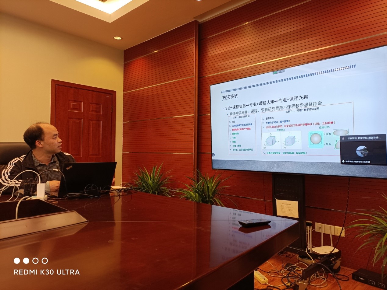 覃老师首先介绍了自己在疫情期间因为线上教学遇到挑战,而决心开展教学改革创新的思路和勇气,值得钦佩。覃老师结合丰富的教学经验,提出(1)具体的课程知识体系是学生专业研究方向的桥梁和纽带,在教学活动中应凝练教学思路,将课程、学科研究思路与课程教学思路相结合;(2)学生的学习兴趣来自实践的信息获取、认知能力和需求满足的观点,教学实践的关键在于足够、正确的信息获取的基础上,培养学生的认知能力,使学生具有获得感和满足感;(3)学生的成绩评定是个复杂的问题,需要深入的研究。覃老师声情并茂的分享引起了参会老师的共鸣,大家积极分享自己的心得体会,并与覃礼貌老师进行了互动交流。
