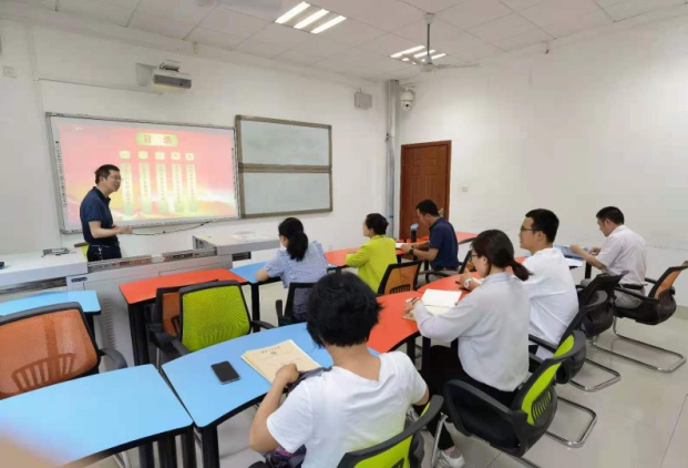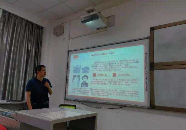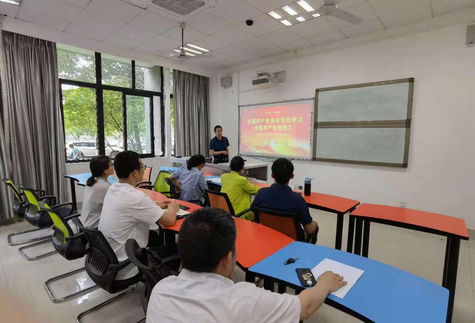 党委委员张玉春同志主讲,张玉春同志以《中国共产党的创立》为题,张玉春同志结合自己学习党史的理解,分享自己党史学习的体会,主要从中国共产党创立的背景、中国共产党的创立和意义、党创立后的工人运动、国共合作和大革命洪流、北伐战争和大革命失败等五个方面进行讲解,向各位党员同志讲述了1900年八国联军侵华到1927年大革命失败这一历史时期中国共产党创立的苦难历程。