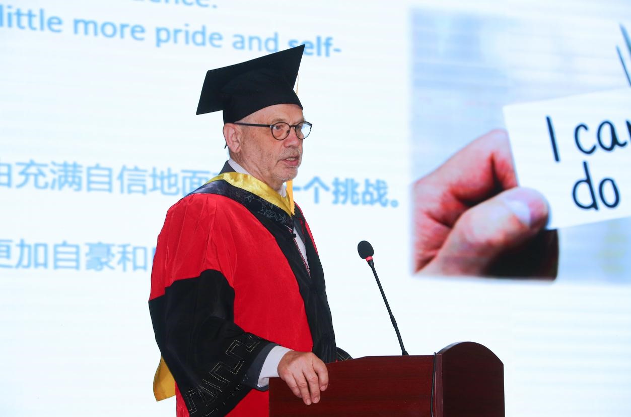 Plümer院长表达对大家毕业的祝贺,他充分肯定了同学们四年来的勤奋与努力,鼓励大家更加自豪、自信地面对下一个挑战,也希望同学们永远铭记这段美好的求学时光,铭记在这里遇到的良师益友。