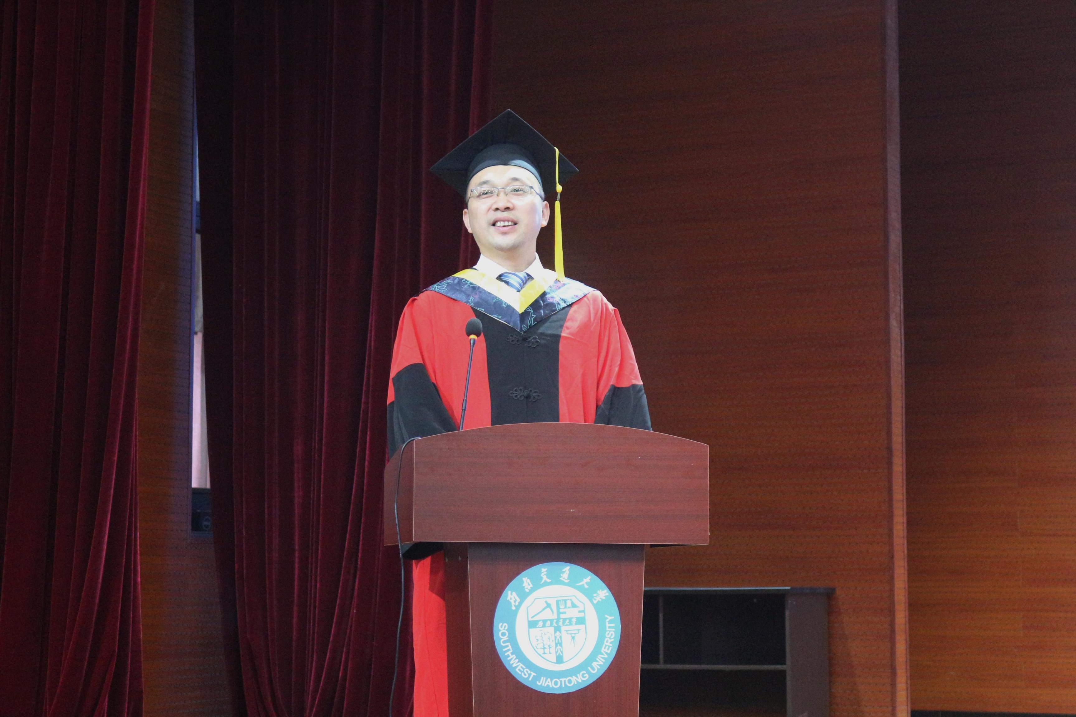 院长助理、环境工程系系主任赵锐教授作为教师代表发言。他表达了对同学们的眷恋之情,以及最殷切的希望和最真挚的祝愿。他寄语同学们,要只争朝夕,不负韶华,坚持学习,勇于创新,做一个优秀的人;要坚定理想信念,做一个永不言败的人;漫漫人生路上,他更希望同学们常怀感恩之心,做一个有温度的人。