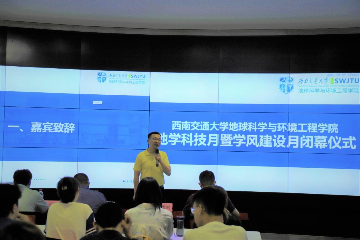 党政领导班子对地学科技月系列活动的成功举办及取得优异成绩的队伍表示祝贺,并对指导老师和工作人员的辛劳付出表示感谢;希望同学们可以将这次活动中的收获付诸于未来的学习生活中,带着“竢实扬华”的精神为社会建设贡献自己的力量。