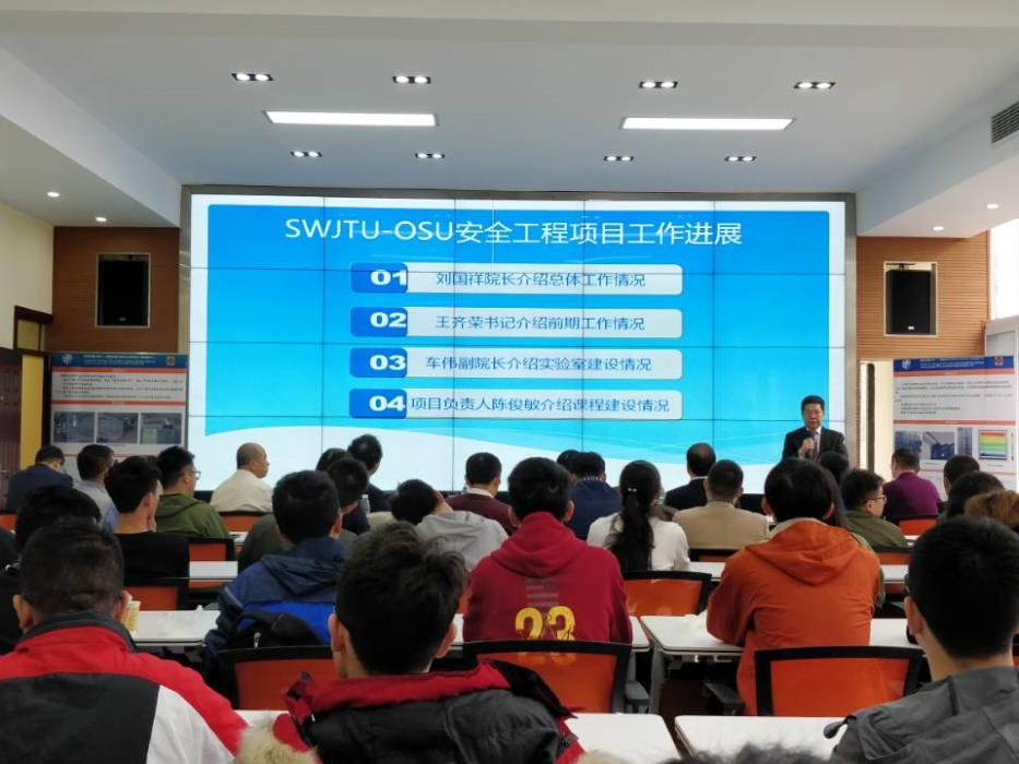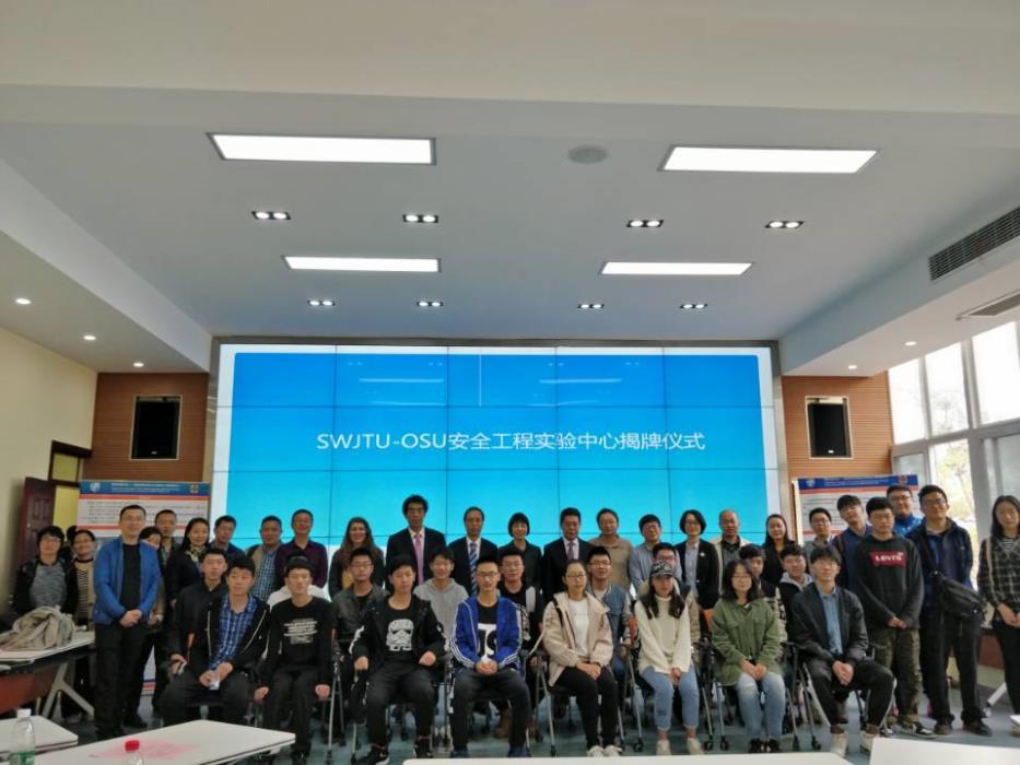 On November 3, SWJTU-OSU Lab Opening Ceremony was inaugurated successfully in the Lab building 1, Emei campus. President assistant professor Wang xiao ru, Director of International Department Ren xinhong, Dean of Geosciences and Environmental Engineering School Dr. Liu, Vice Dean Professor Che, Students’ counselors and all the students from SWJTU-OSU attended the ceremony.