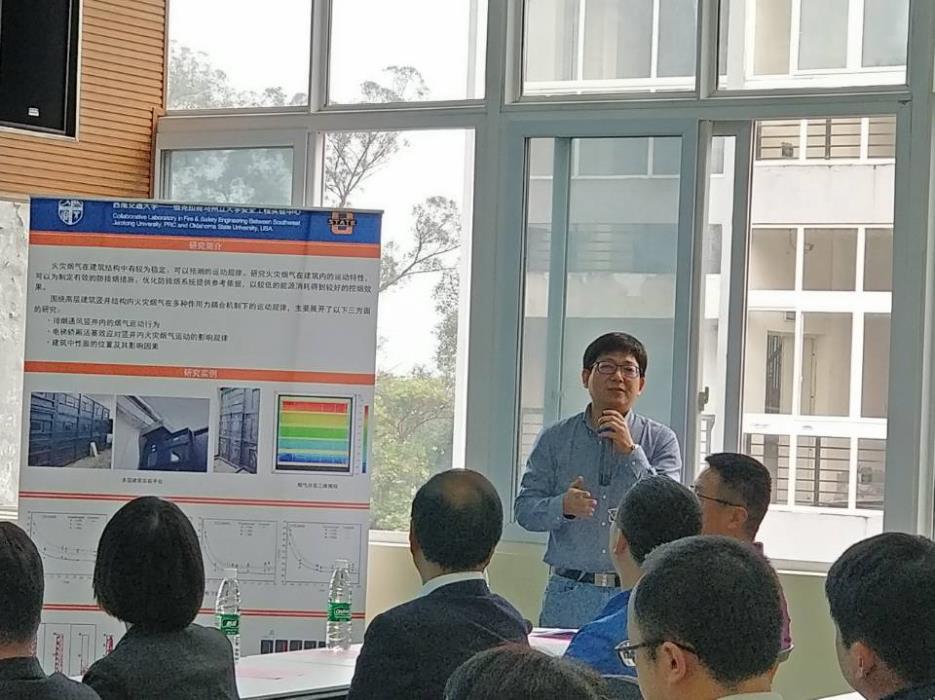 Before the opening ceremony, the dean Professor Liu accompanied President assistant professor Wang xiaoru and director Ren xinhong to visit the basic laboratory of combustion science, hydraulics and fire water supply laboratory. All the participants watched the publicity video of Southwest Jiaotong University rail transportation in the newly built virtual simulation laboratory.