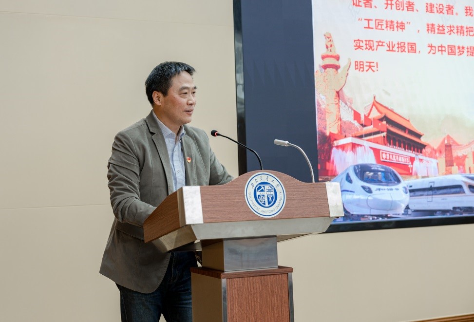 关秦川对本次活动进行总结。结合李万君同志的报告内容,激励在场师生党员要培养执着专注、精益求精、一丝不苟、追求卓越的工匠精神,“如切如磋,如琢如磨”,争取做到干一行,爱一行,专一行,精一行。最后用“为师者,窥学术,贯西中,为匠心行稳致远;为学者,基础坚,事功崇,为匠心不负光阴,相期同造最高峰”与现场师生共勉。