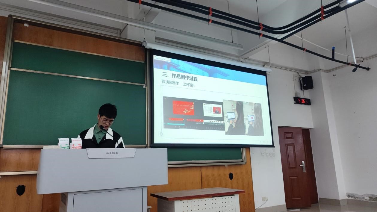 分党校2023-01期入党积极分子党课培训班开展了以“学习二十大,奋进新征程”为主题的实践活动。活动前期,培训班成员被分为十五个小组,以小组为单位围绕党的二十大报告、伟大建党精神、“两路”精神等主题,广泛收集资料,经小组学习研讨后,共同制作了学习作品。4月9日下午14:30在X4357教室进行了作品的集中汇报展示。