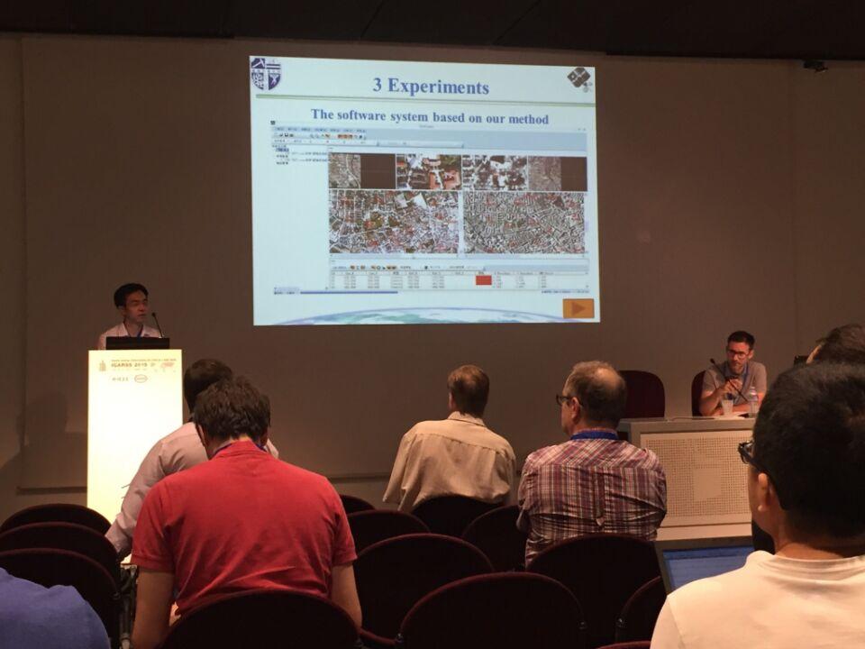 The International Geoscience and Remote Sensing Symposium 2015 (IGARSS 2015) was held from July 26th through July 31th, 2015, at the Convention Center in Milan, Italy. This is one of the most influential conferences in geoscience and remote sensing community, and attracted over 2000 academics and industry professionals from over 60 countries. Dr. Min Chen, Dr.Yuanxin Ye, Dr. Li Shen, and Jicheng Wang (graduate student) in our faculty attended the conference. Dr. Chen and Dr. Ye gave oral presentations titled “GGSOR: A GAUSSIAN-GAMMA-SHAPED BI-WINDOWS BASED DESCRIPTOR FOR OPTICAL AND SAR IMAGES MATCHING” and “AUTOMATC MATCHING OF OPTICAL AND SAR IMAGERY THROUGH SHAPE PROPERTY”, respectively. Dr. Shen and his graduate student Jicheng Wang gave a poster presentation titled “RESEARCH ON RELATIONSHIP BETWEEN REMOTE SENSING IMAGE QUALITY AND PERFORMANCE OF INTEREST POINT DETECTION”. IGARSS provides our faculty members and student an ideal forum for obtaining up-to-date information about the latest developments, exchanging ideas, identifying future trends and making networking with the international geoscience and remote sensing community.
