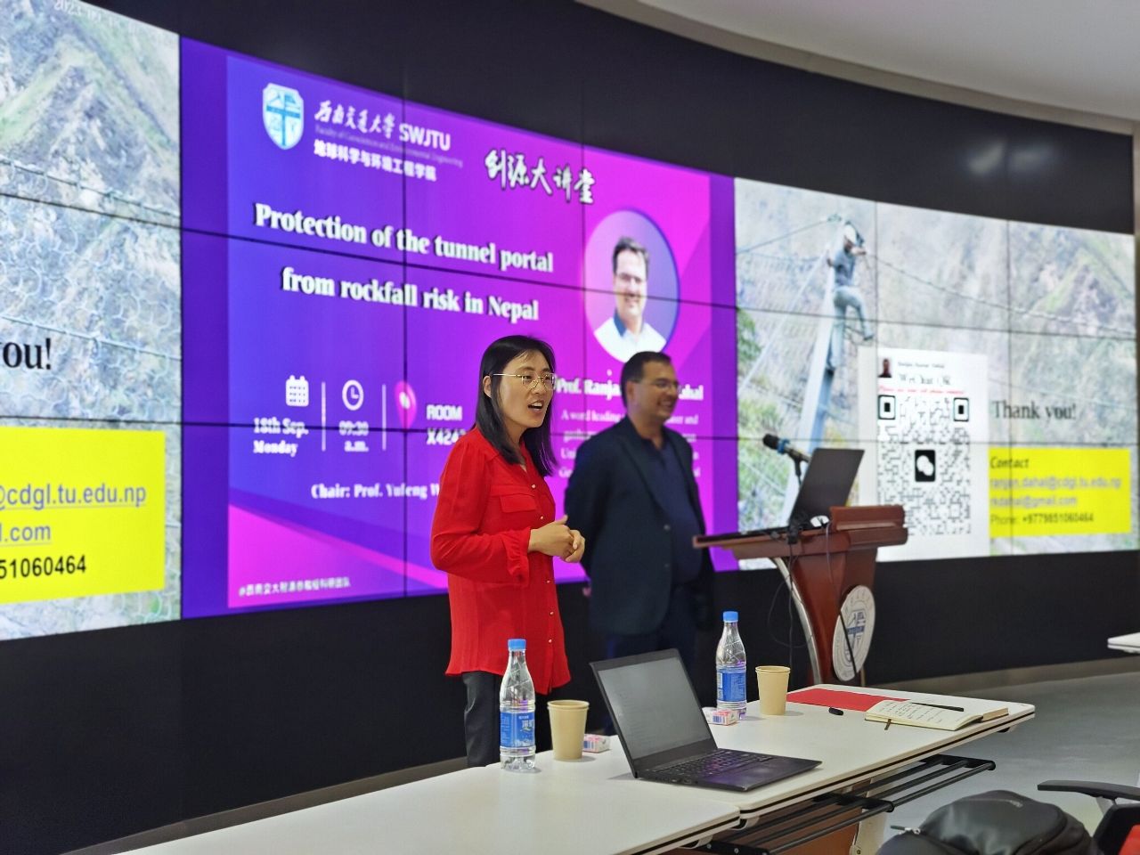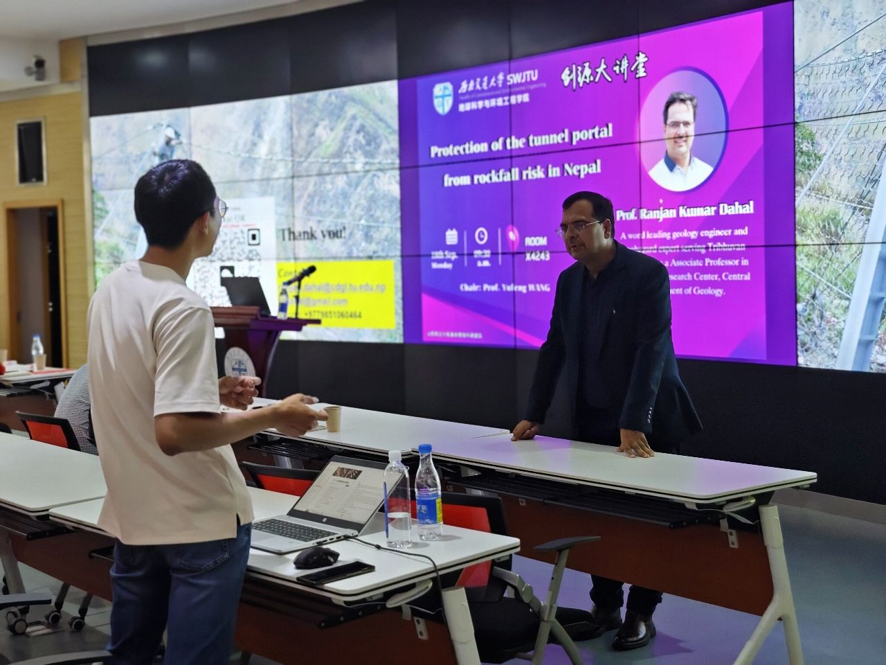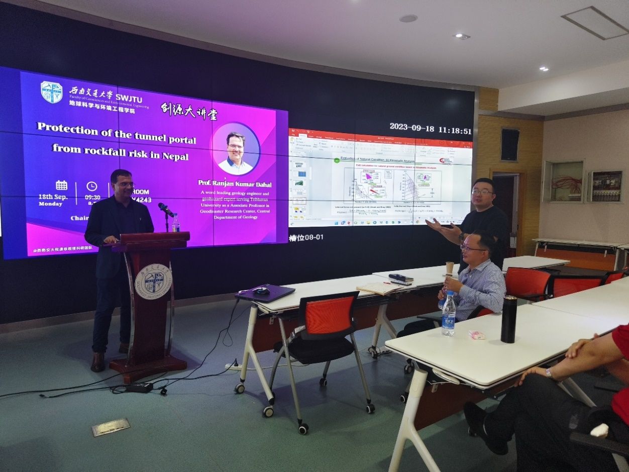 建设,开阔师生国际视野,提高师生科研能力,营造良好学术氛围,我院程谦恭教授团队特邀尼泊尔特里布文大学Ranjan Kumar Dahal教授于2023年9月18日上午在犀浦校区X4243会议室开展学术报告。Ranjan教授是尼泊尔地质工程和地质灾害领域著名专家,过去20年来一直从事地震、滑坡和泥石流等地质灾害的研究工作。