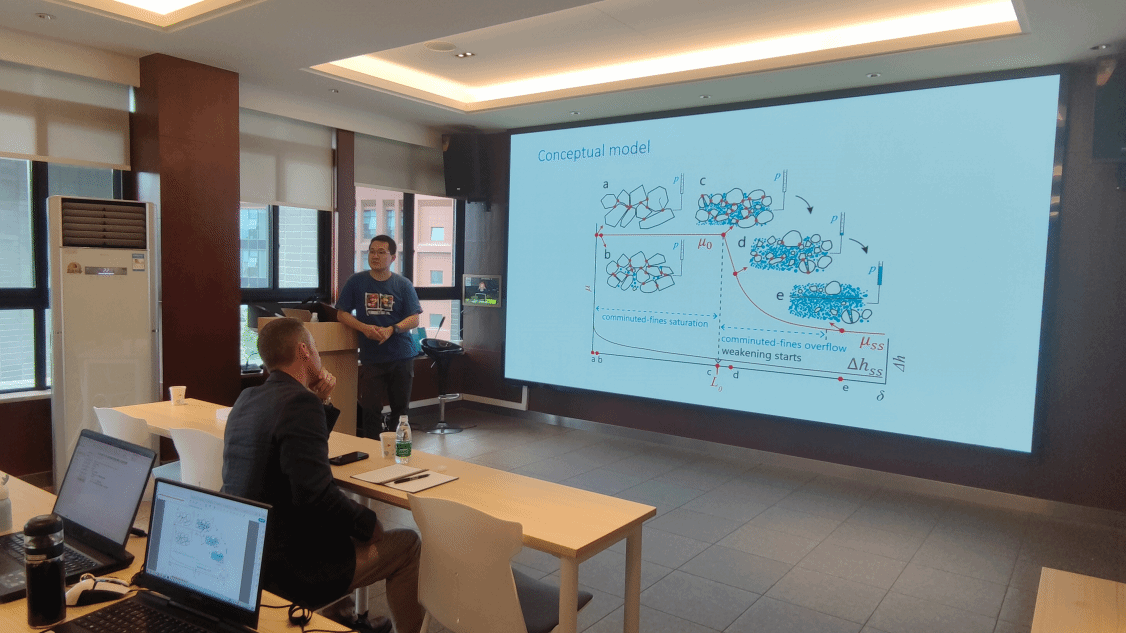程谦恭教授团队邀请,东京大学Slow-to-Fast地震学实验物理课题组常承睿研究员赴我校做题为《Granular Friction in Multi-scale Earth Dynamics: from Landslide to Earthquake》的学术报告。常承睿特聘研究员毕业于京都大学地球与行星科学系,主要从事与地震、滑坡和火山等大规模地球物理过程相关的实验与统计物理研究,近期主要集中于颗粒材料的摩擦行为、蠕变与破坏时间预报相关问题。该报告属于程谦恭教授团队举办的“创源大讲堂”系列讲座之一,由王玉峰特聘研究员主持,共计五十余人积极参与其中。