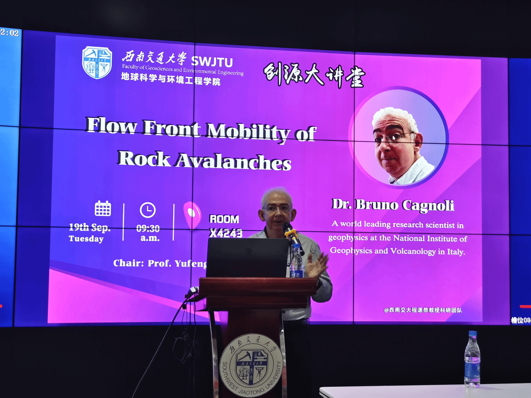 建设,开阔师生国际视野,提高师生科研能力,营造良好学术氛围,我院程谦恭教授团队特邀意大利国家地球物理学与火山学研究所Bruno Cagnoli教授于2023年9月19日上午在犀浦校区X4243会议室开展学术报告。Bruno Cagnoli教授是世界领先的地球物理学研究学者,他在加拿大英属哥伦比亚大学获得博士学位,先后曾在英国布里斯托大学和美国加州大学伯克利分校担任博士后。