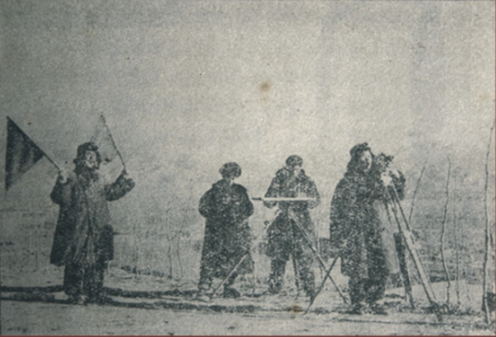 1958年唐山铁道拉斯维加斯娱乐城 师生参加兰青线上的勘测 1983年-学生在测量